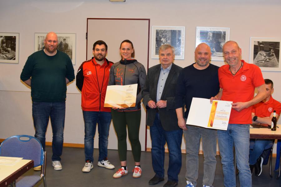 Leon Maier wird mit der Ehrenurkunde des Fußballverbandes Rheinland ausgezeichnet, übergeben von Dennis Schumacher. Arno Ilse wurde mit der bronzenen Ehrennadel des Tennisverbandes Rheinland ausgezeichnet durch Alexander Specht. Vivien Breiden erhielt von Hans-Werner Röhrig die bronzene Ehrennadel des Sportbundes Rheinland. Daniel Günster ehrte Mario Sauer für seinen langjährigen engagierten Einsatz bei der Sportplatzpflege.