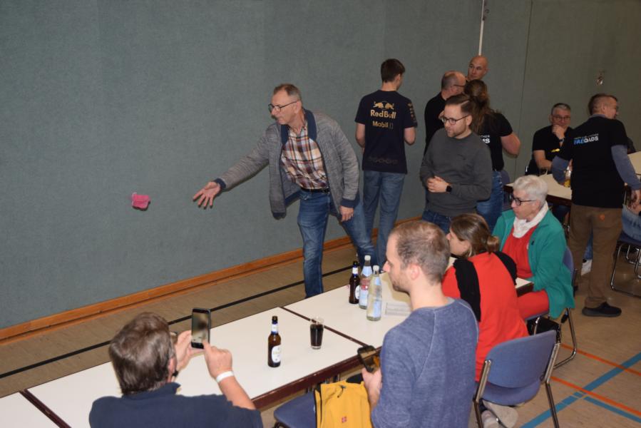 Organisatorisches Der letzte Durchgang startet samstags um 18.00 Uhr. Samstags ab 20.30 Uhr haben Damenmannschaften an den Stationen Vorrang. Ergebnisse/Platzierungen Bei gleicher Punktzahl werden die jeweiligen Gewinner auf der Bühne entschieden. Die in den Ergebnisslisten angegebene Platznummer ist deshalb nicht die endgültige Platzierung. Nur zwischen den anwesenden bzw. auf der Bühne erscheinende Personen wird durch Zielwerfen der Platz ermittelt. Sonstiges Es handelt sich um eine öffentliche Veranstaltung auf der Fotos gefertigt werden und über die im Rahmen der Öffentlichkeitsarbeit im Internet entsprechend berichtet wird. |